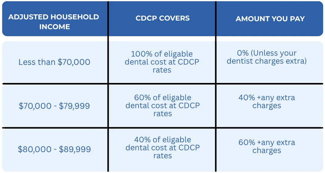 Depending on your income level, the CDCP may cover up to 100% of your eligible dental services. However, some procedures may have a partial co-pay, and if treatment fees go beyond the CDCP limits, there may be out-of-pocket costs. We’ll explain everything up front so there are no surprises.